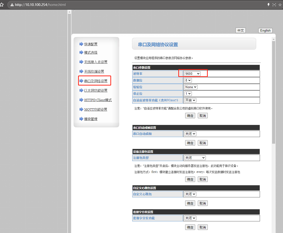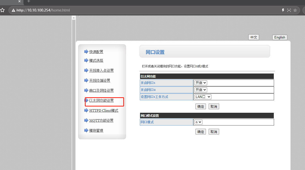 使用USR-W630默認(rèn)IP,10.10.100.254,在瀏覽器輸入登錄USR-W630內(nèi)置網(wǎng)頁,登錄名是admin,登錄密碼admin。