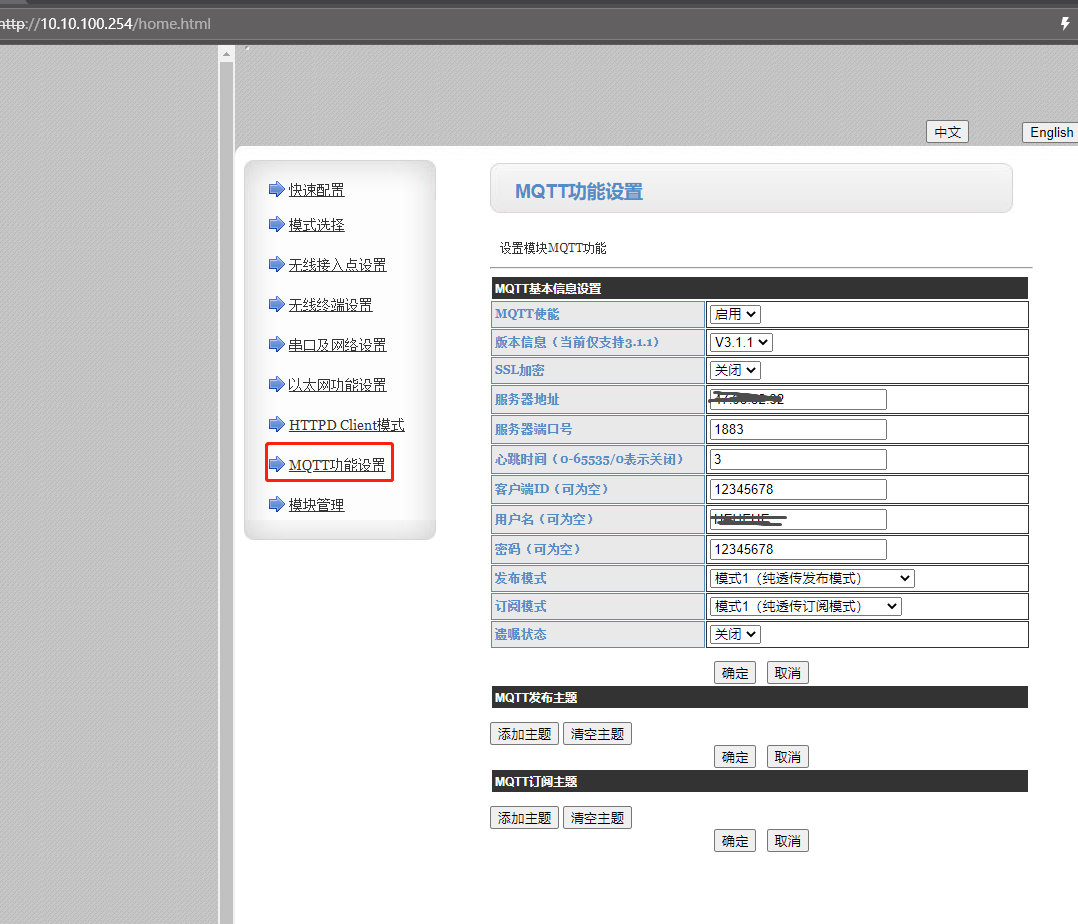 (2)配置MQTT發(fā)布主題和訂閱主題
