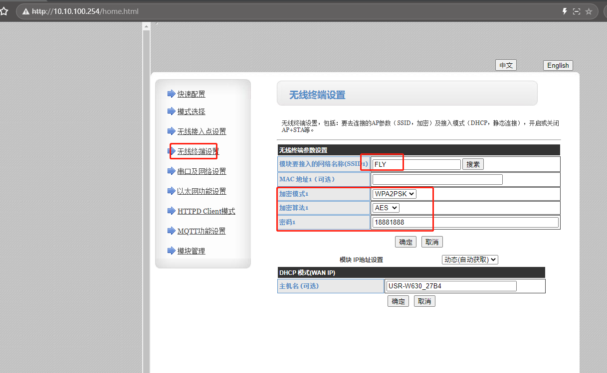 四、網(wǎng)頁配置USR-W630參數(shù)