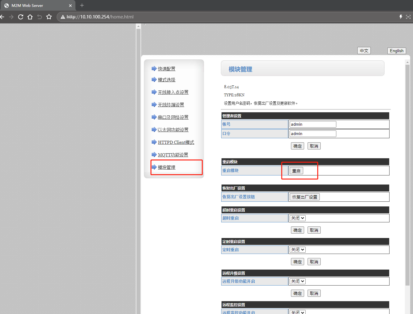 3、網(wǎng)頁設(shè)置完參數(shù),重啟模塊。