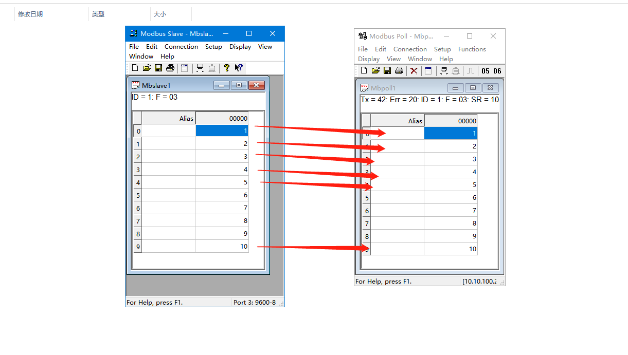 用MODBUS SLAVE軟件改變數(shù)值,MODBUS POLL就可以讀取到數(shù)據(jù),還可以監(jiān)控數(shù)據(jù)。