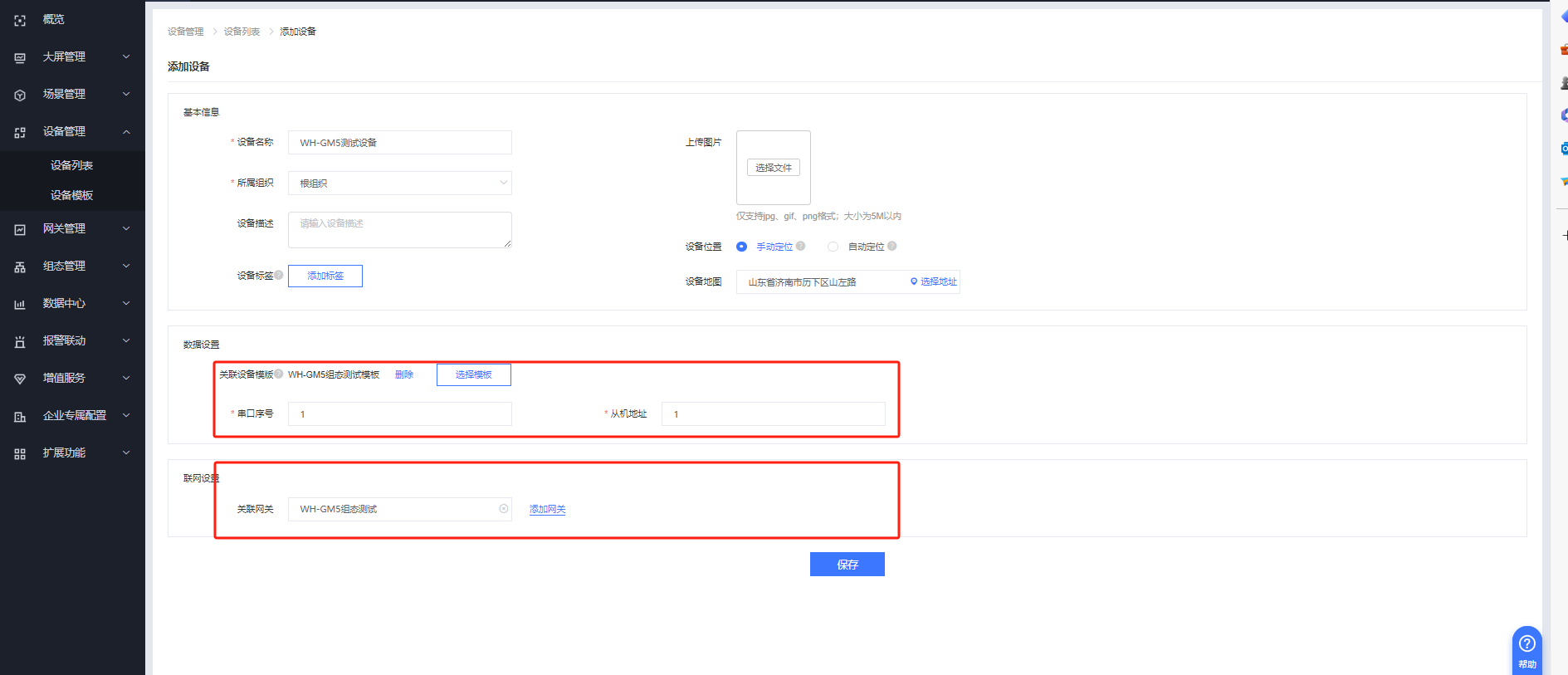 設(shè)備綁定網(wǎng)關(guān),點(diǎn)擊保存即可。
