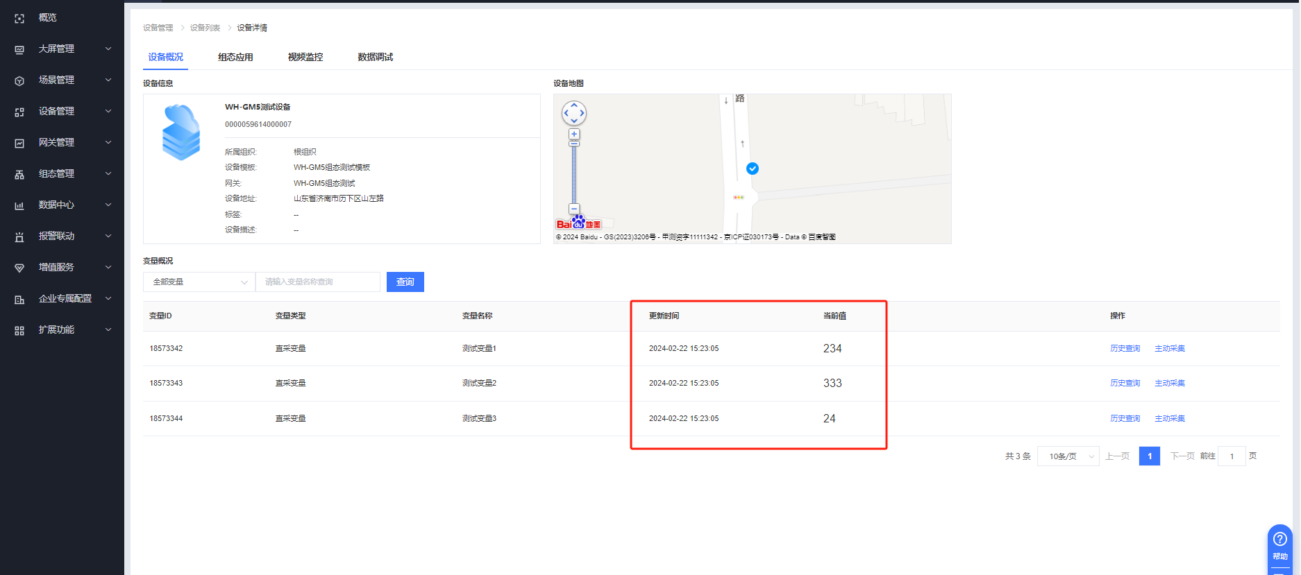 設(shè)備管理---設(shè)備列表,點(diǎn)擊設(shè)備名稱即可看到變量數(shù)據(jù)