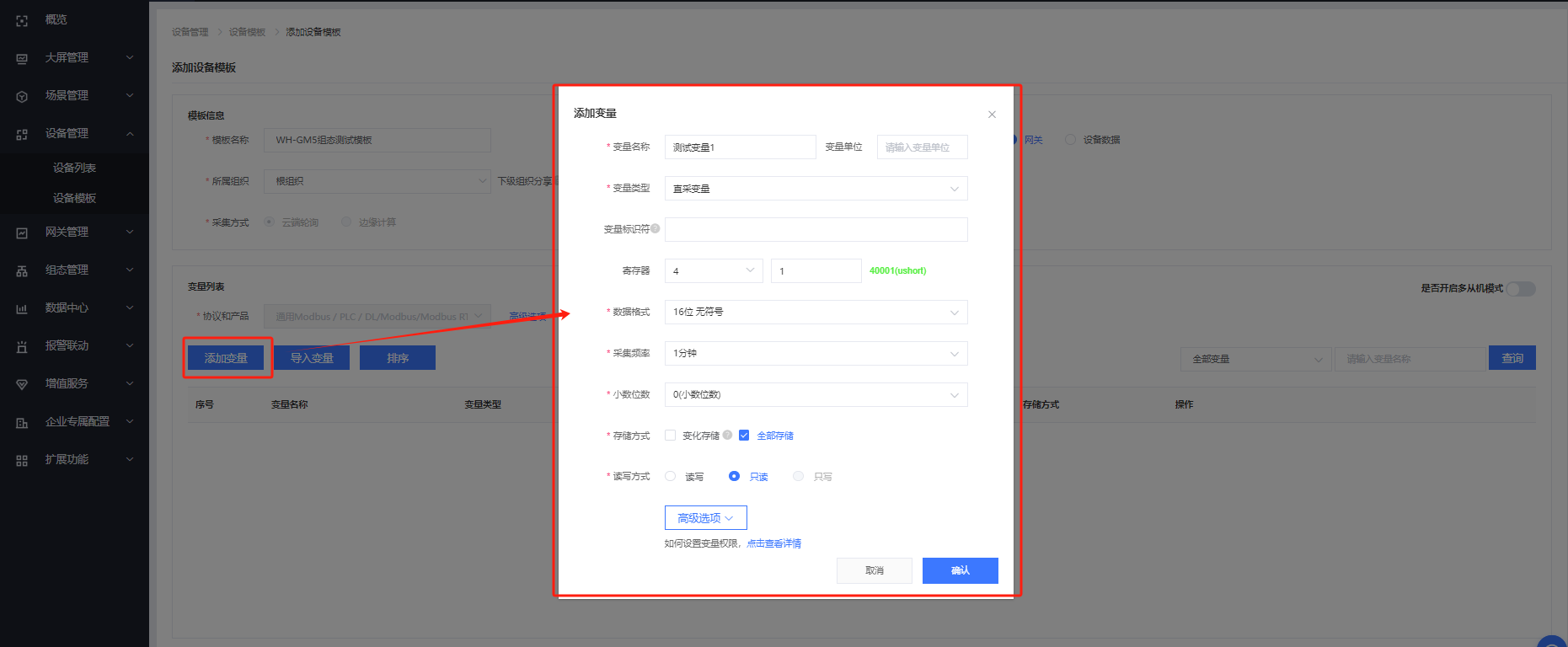 設(shè)備管理---設(shè)備模板---添加