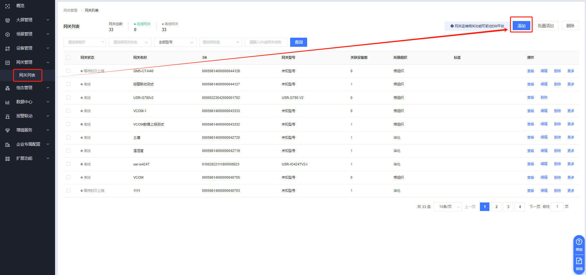 網(wǎng)關(guān)管理---網(wǎng)關(guān)列表---添加