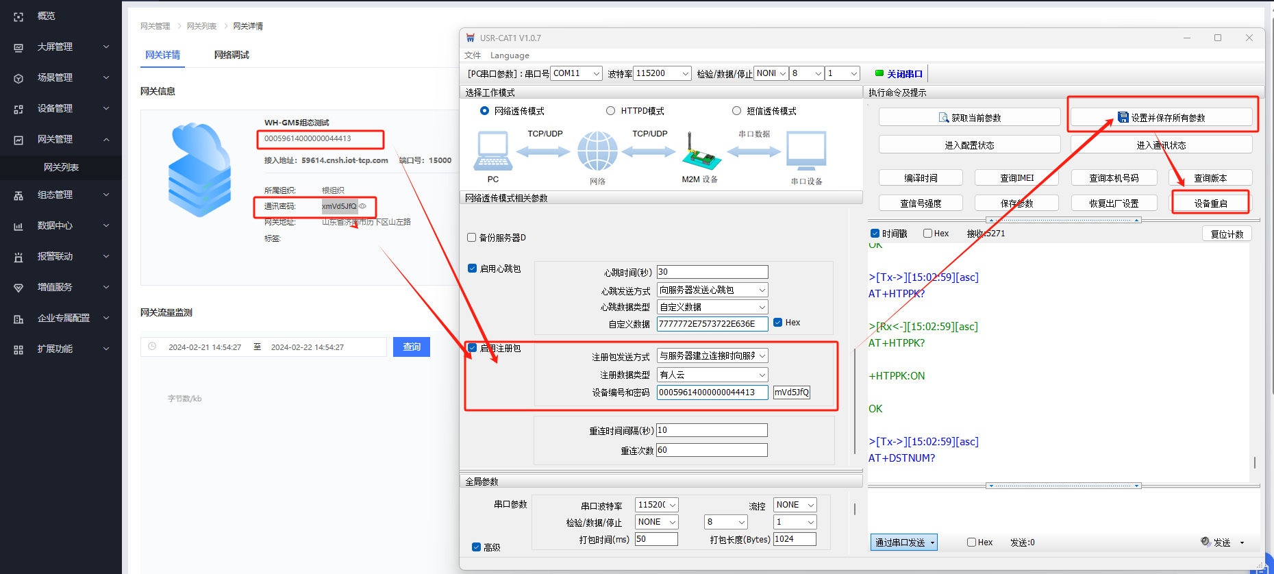 點(diǎn)擊獲取當(dāng)前參數(shù),然后將有人云給GM5分配的接入地址和ID 密碼填入到GM5中,設(shè)置并保存所有參數(shù),然后重啟設(shè)備