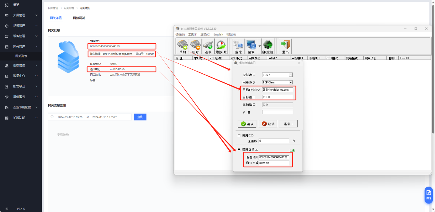打開虛擬串口軟件V3,新建,將有人云分配的接入地址,ID 和密碼填入,點(diǎn)擊確認(rèn)。
