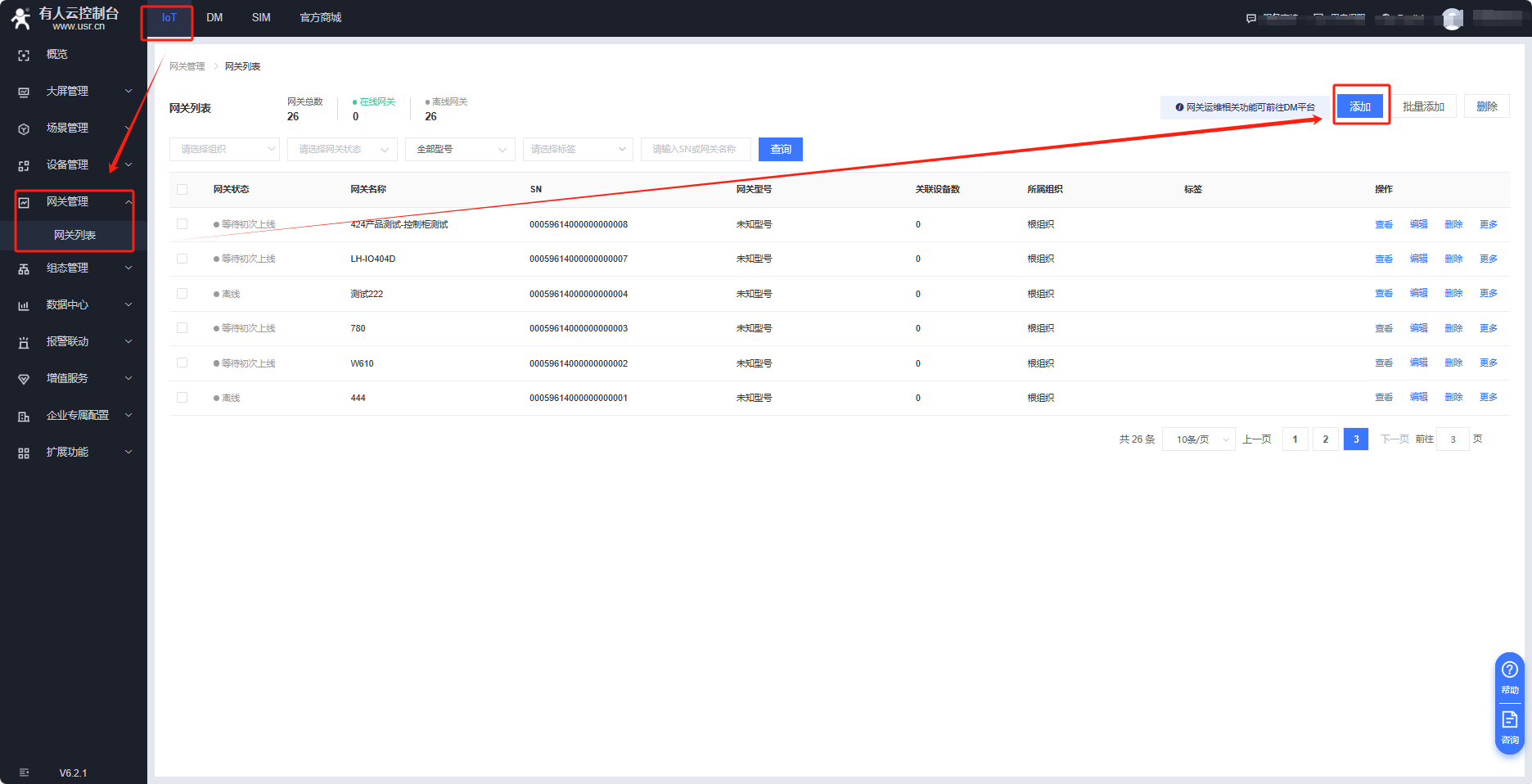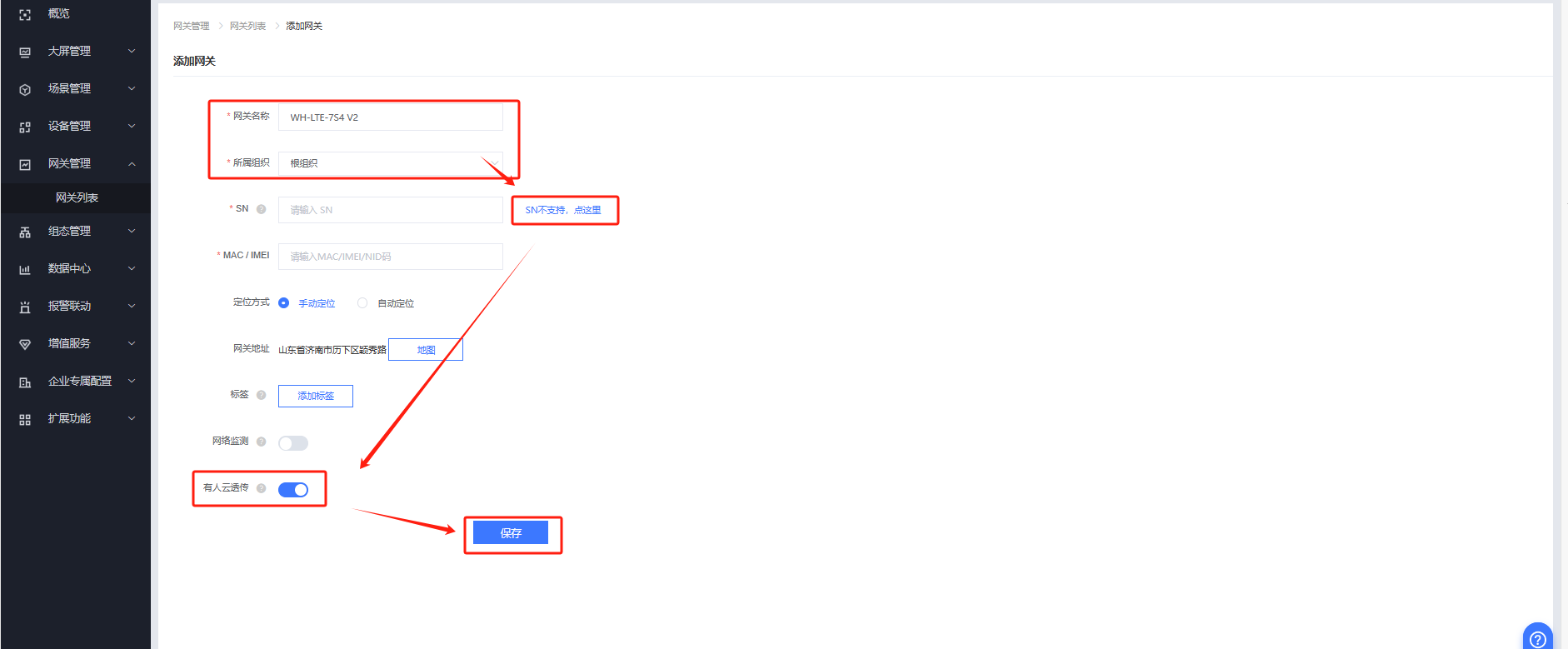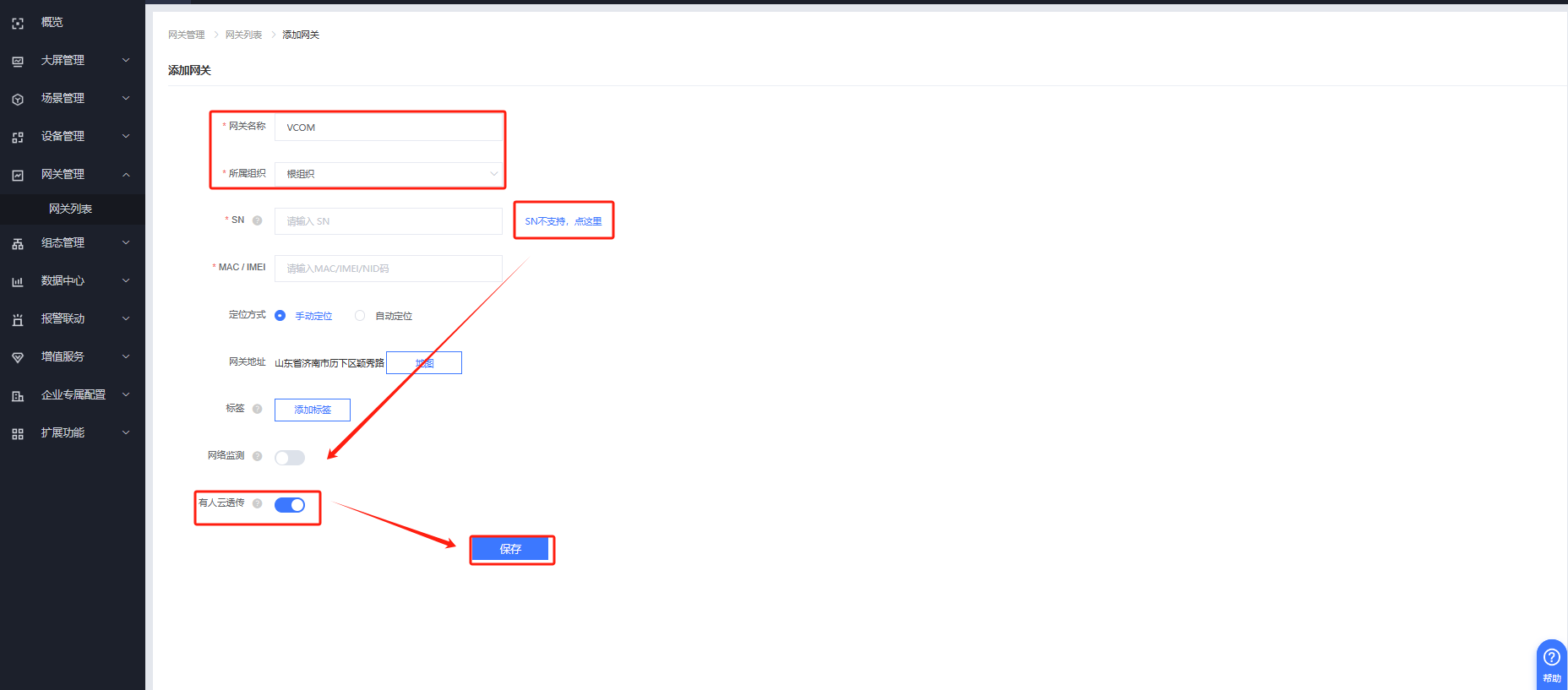 有人云IOT平臺---網(wǎng)關(guān)管理---網(wǎng)關(guān)列表---添加