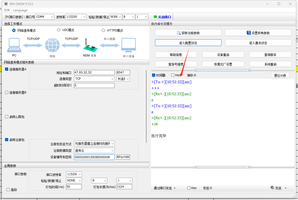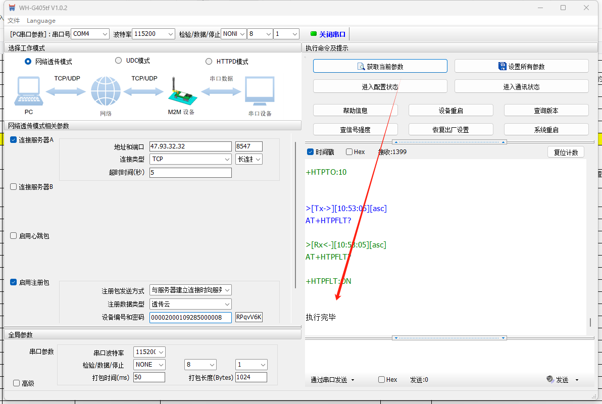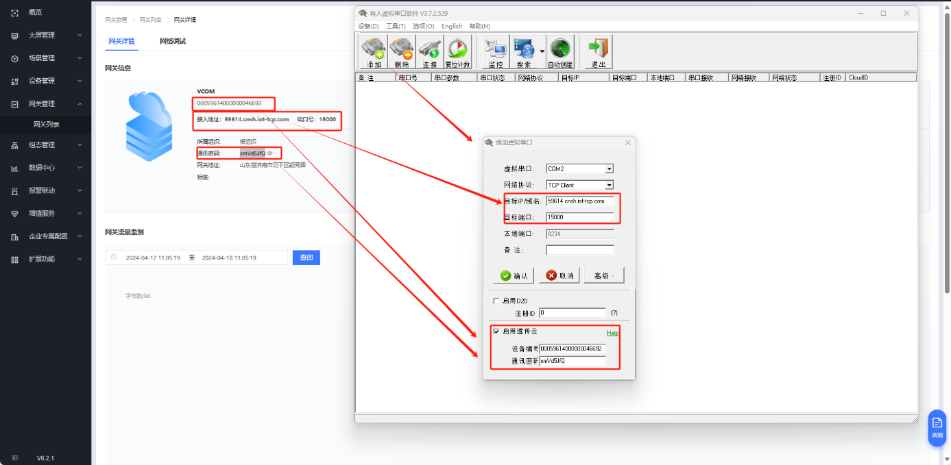 高級選項---啟用透傳云,填入有人云分配的設(shè)備編號和通訊密碼