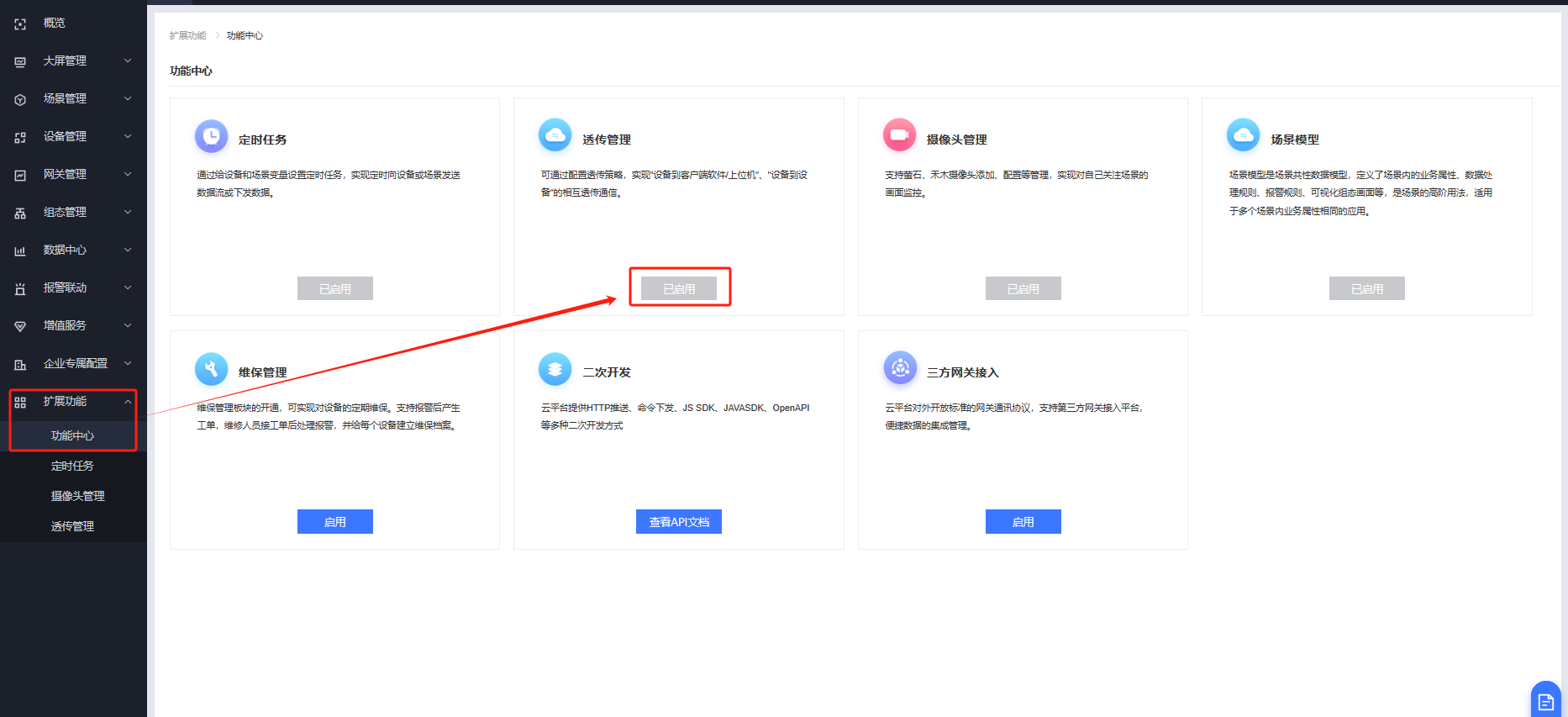 有人云IOT---擴展功能---功能中心---啟用透傳管理