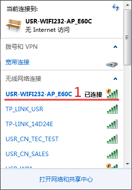 3.模塊默認(rèn)狀態(tài)下,連接到模塊無(wú)線信號(hào).