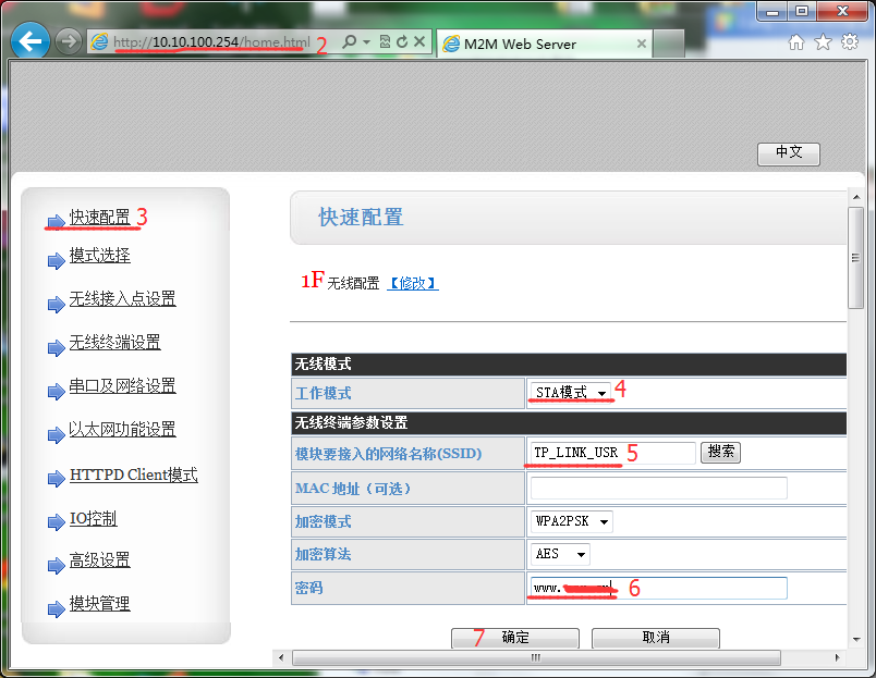 8.查詢到模塊在路由器AP中獲取到IP后,再次打開(kāi)瀏覽器(建議使用IE),在地址欄中輸入模塊獲取到IP。進(jìn)入模塊網(wǎng)頁(yè)修改參數(shù)。