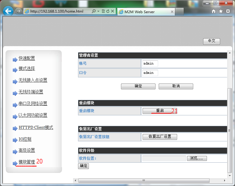 9.參數(shù)設(shè)置完成,將模塊重啟使參數(shù)生效。