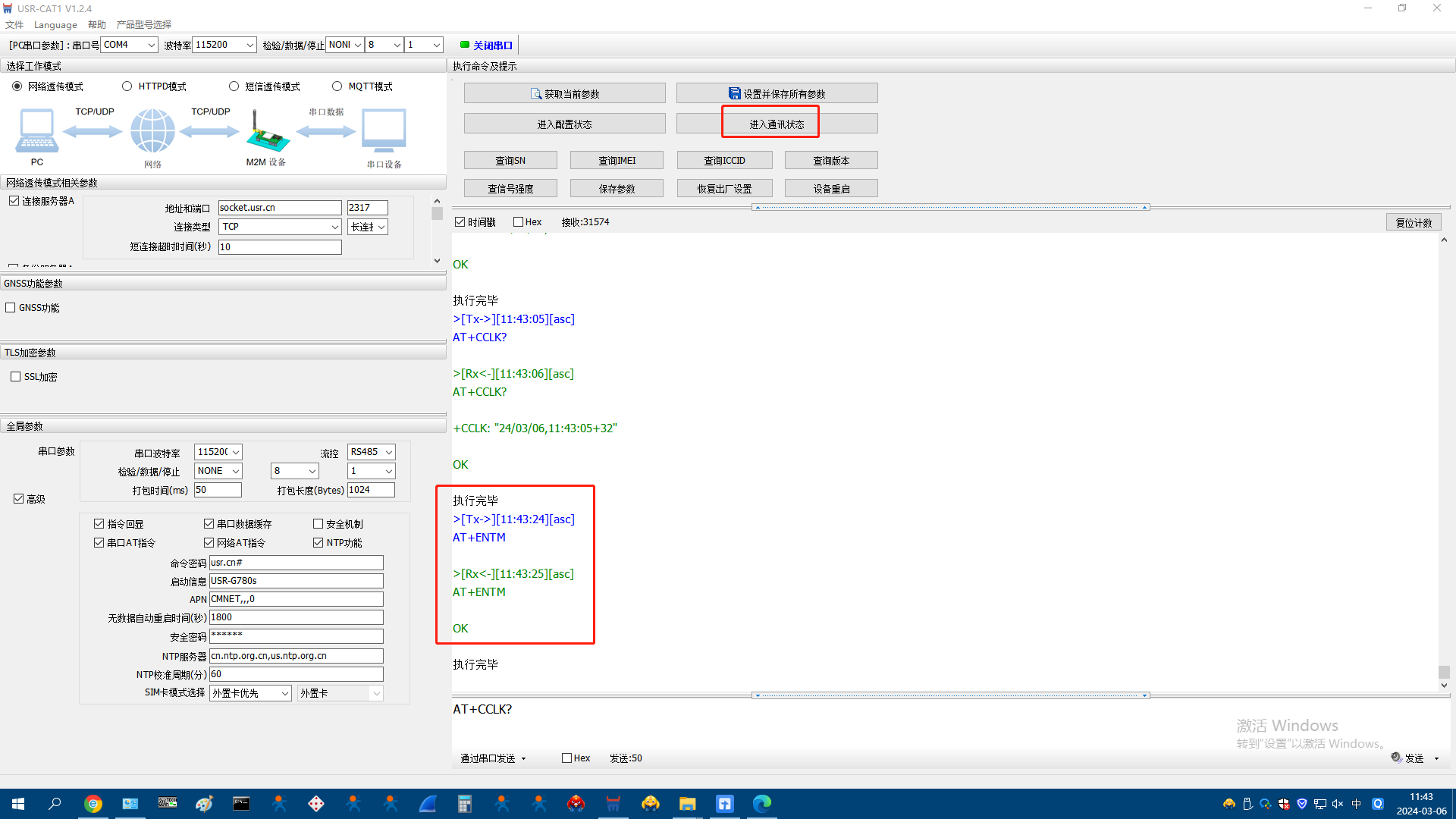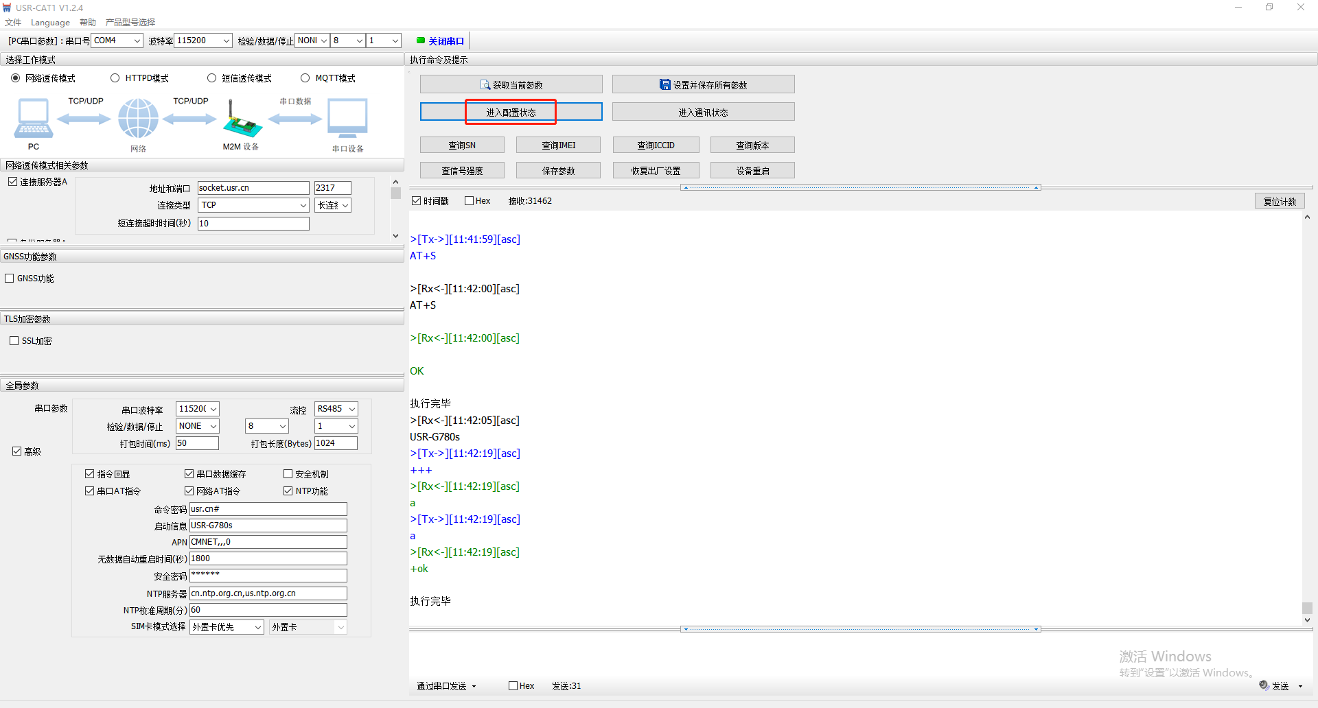 2、打開(kāi)串口,點(diǎn)擊進(jìn)入配置狀態(tài)