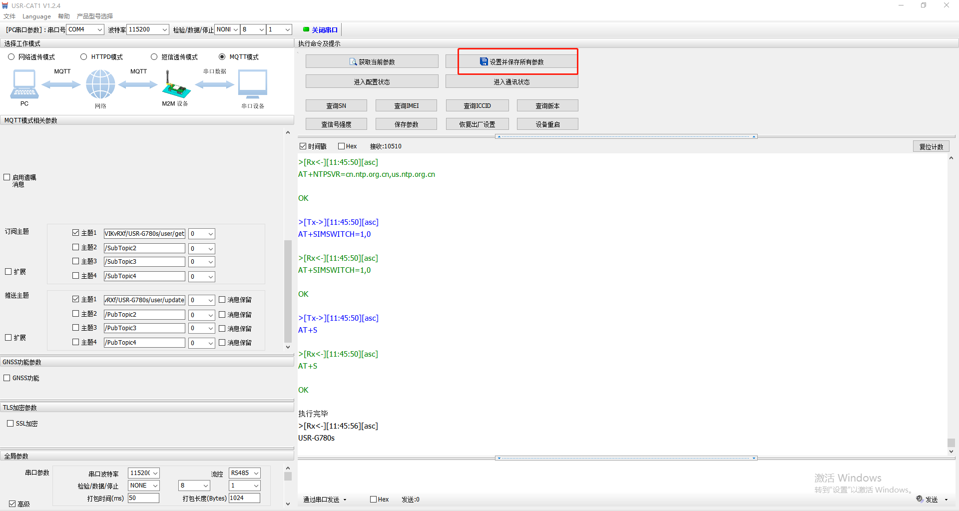 設置USR-G780s的MQTT參數(shù),需要按照以下方法設置訂閱和發(fā)布主題。