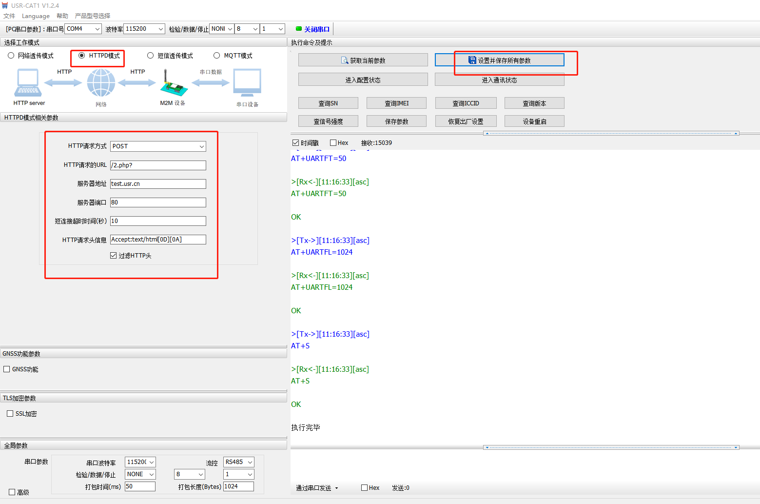 注:這里使用有人公司的測試服務器,收到串口數(shù)據(jù)會將數(shù)據(jù)返回串口。實際使用,可以直接連接實際的HTTPD服務器。