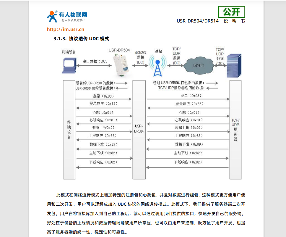 USR-DR514 協(xié)議透?jìng)?UDC 模式示例
