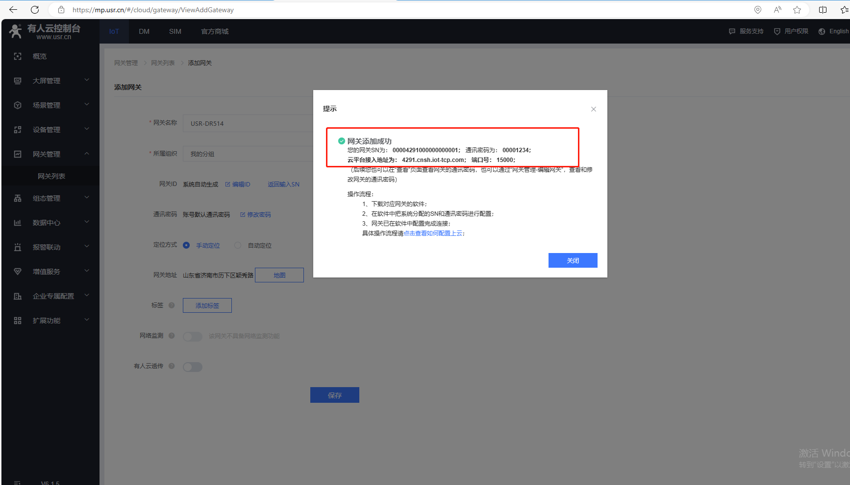 網(wǎng)關(guān)SN為: 00004291000000000001; 通訊密碼為: 00001234;