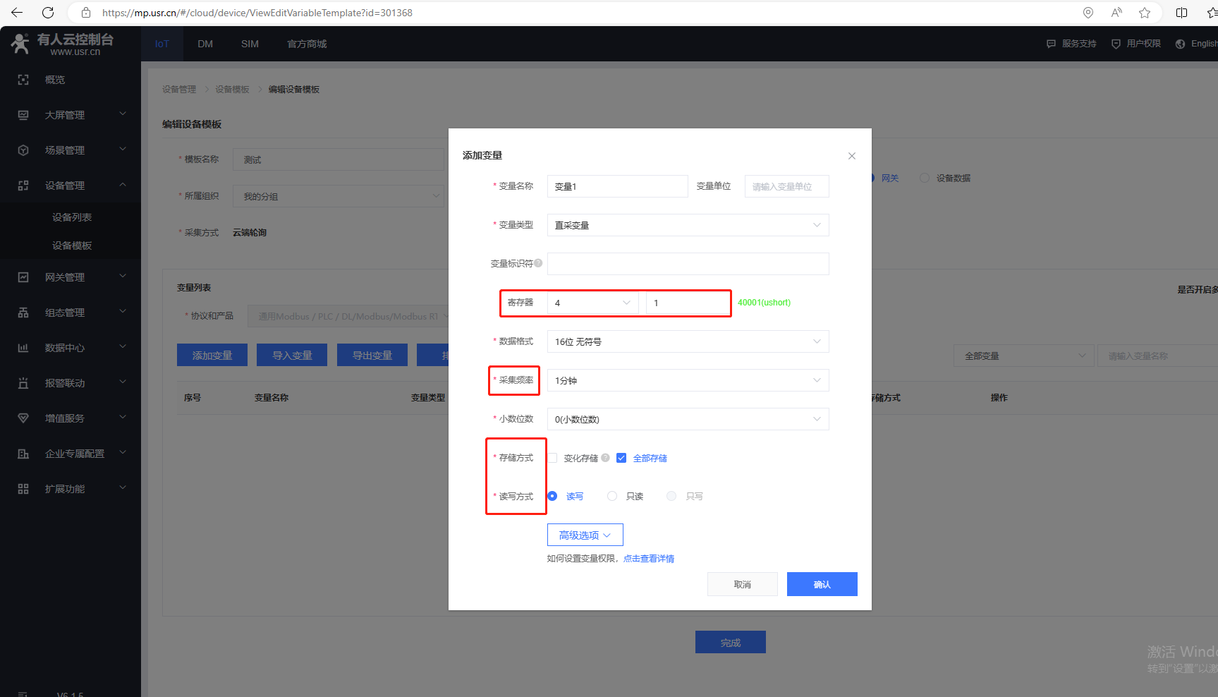 (7)添加變量,點擊設備管理,點擊設備模板,點擊編輯。