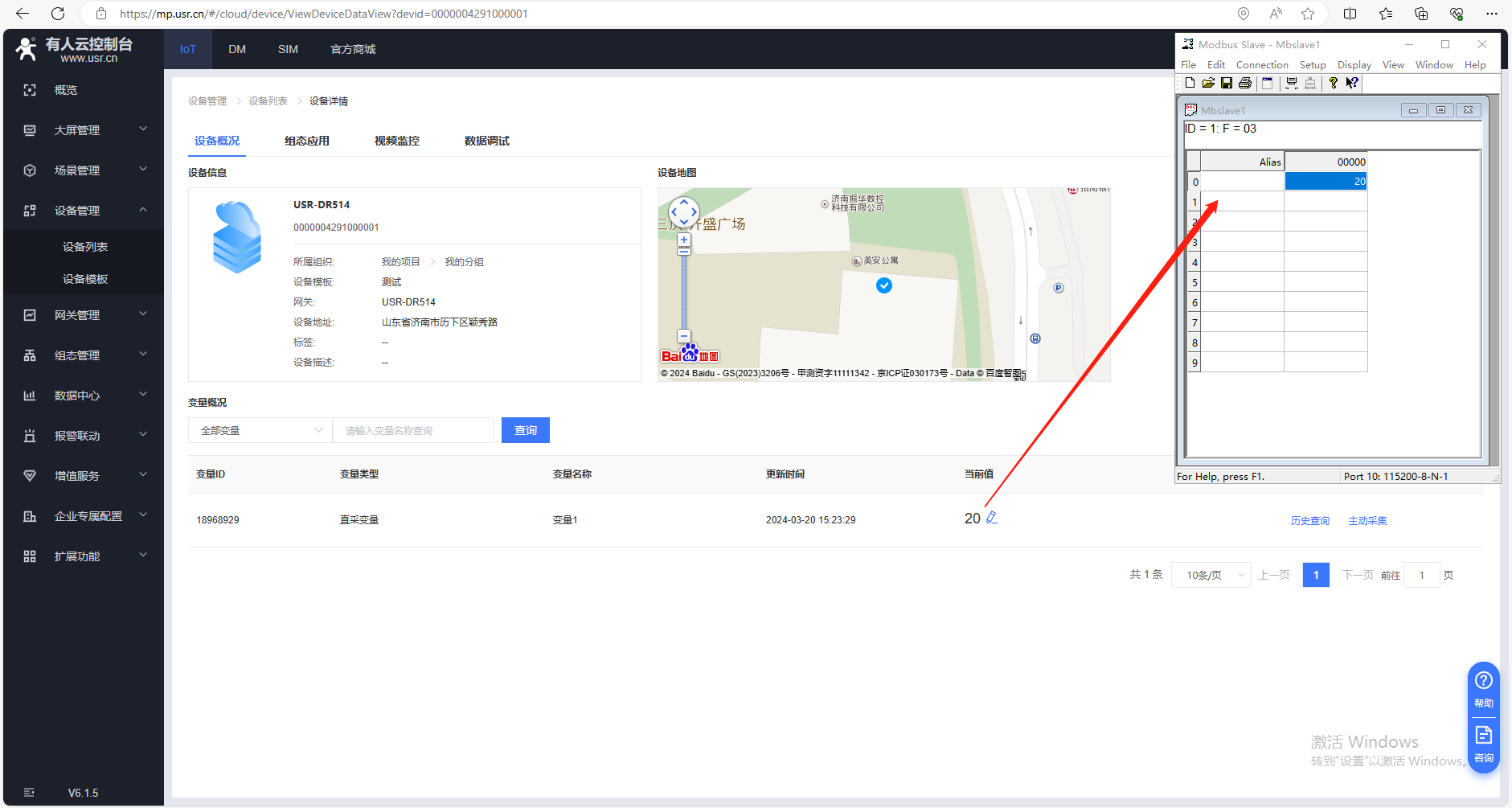 3、有人云寫數(shù)據(jù)20,MODBUS slave數(shù)據(jù)變?yōu)?0。