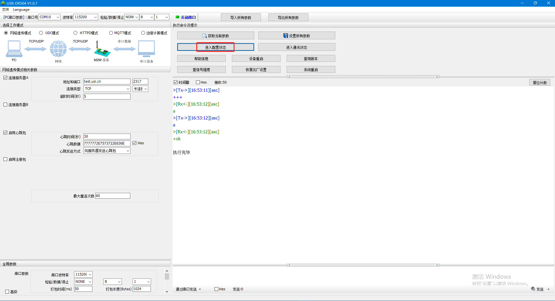 2、打開串口,點擊進(jìn)入配置狀態(tài)