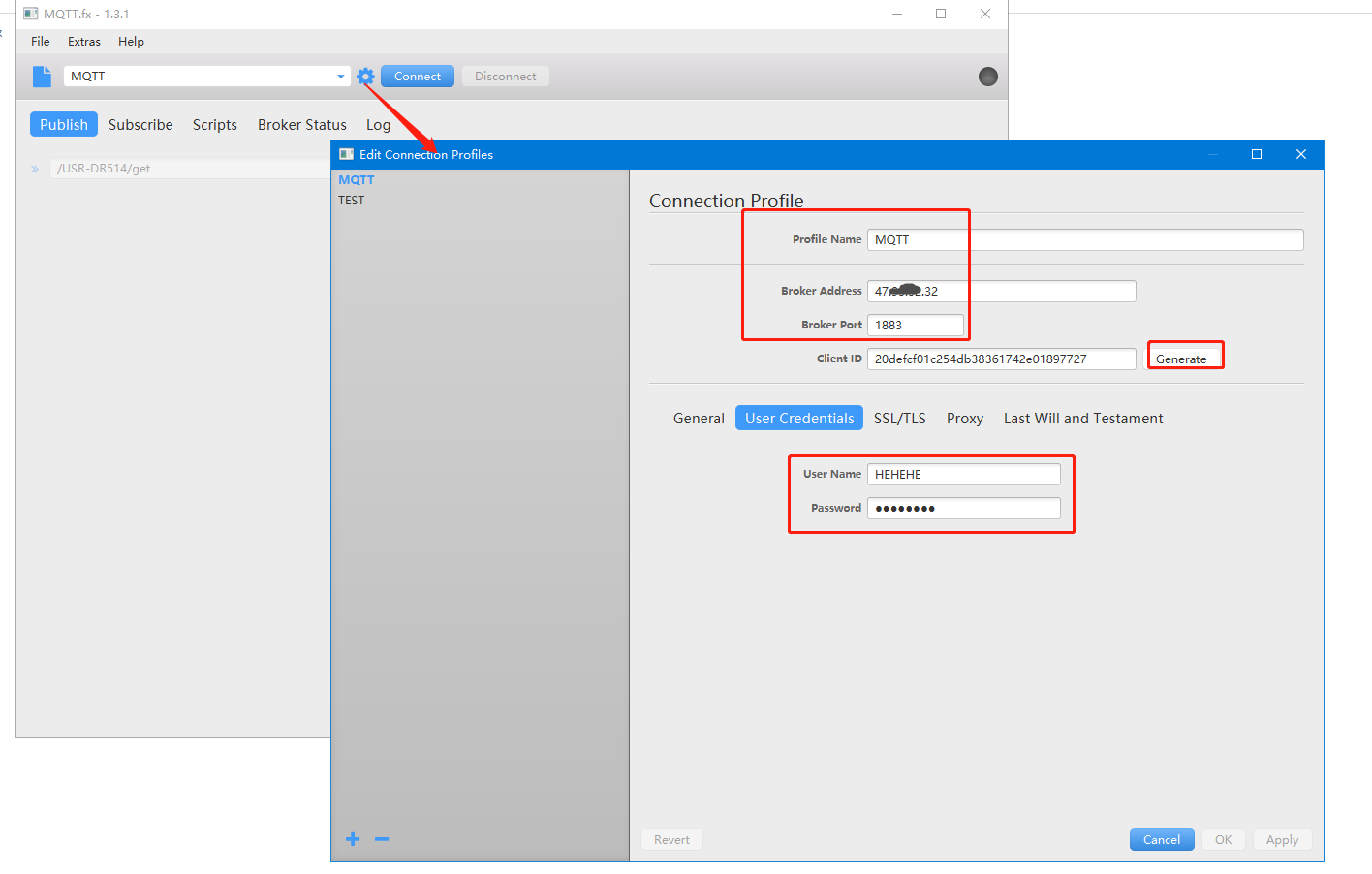 (4)Client ID(客戶端ID)可以點擊后面的Generate自動創(chuàng)建,注意和USR-DR514的客戶端ID不要一樣,如果相同會沖突。