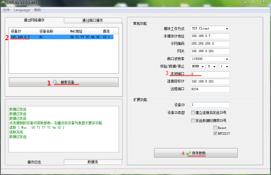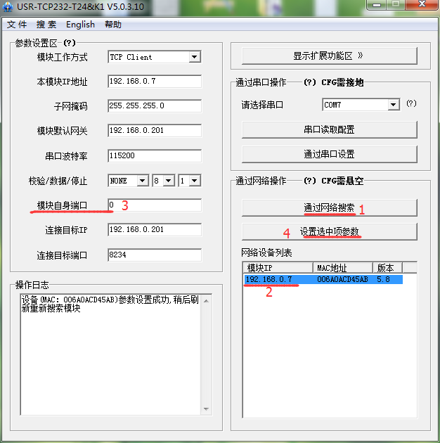 方法:可通過一個網(wǎng)絡(luò)調(diào)試軟件(軟件點擊此處下載),將IP地址和端口設(shè)置與當(dāng)前使用到模塊參數(shù)相同。使用軟件模擬客戶端去連接服務(wù)器,查看是否能連接上。也可以將服務(wù)器重啟。