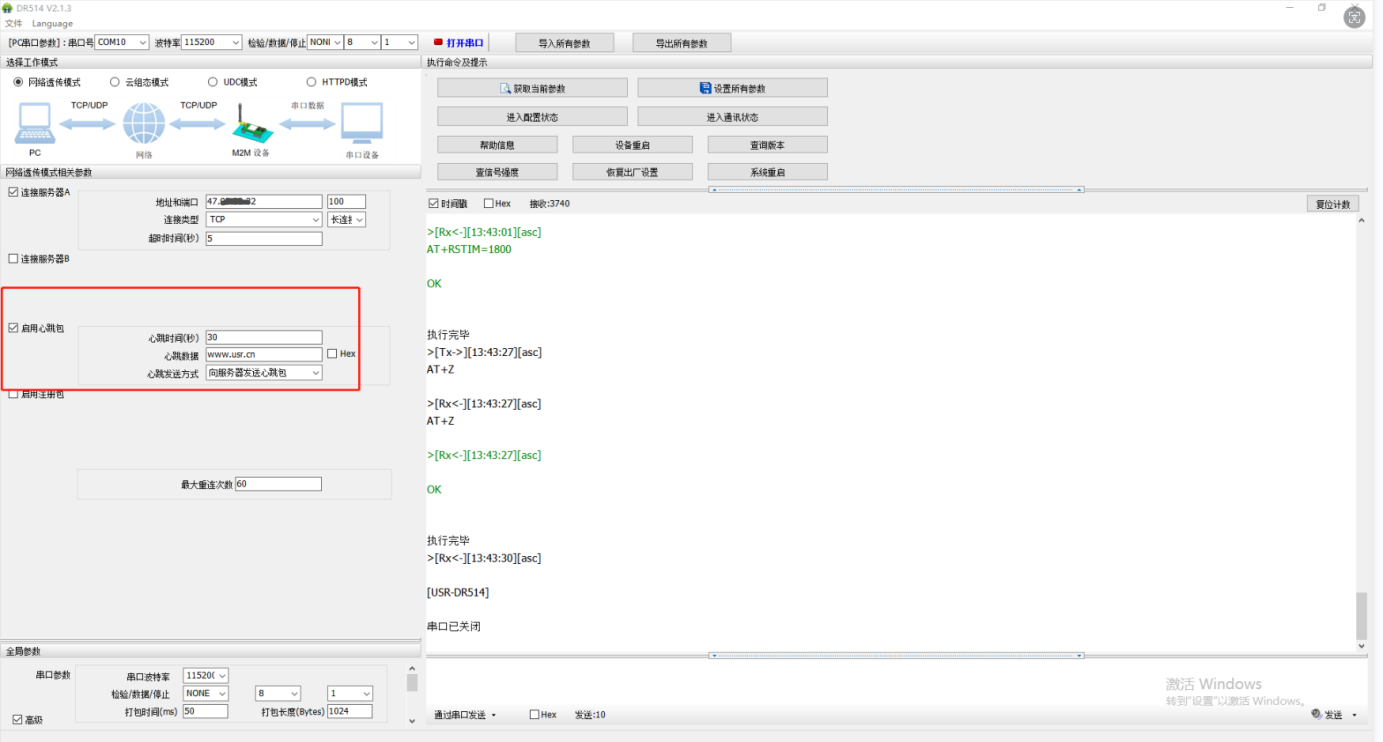 USR-DR514 串口配置網(wǎng)絡(luò)心跳包功能示例