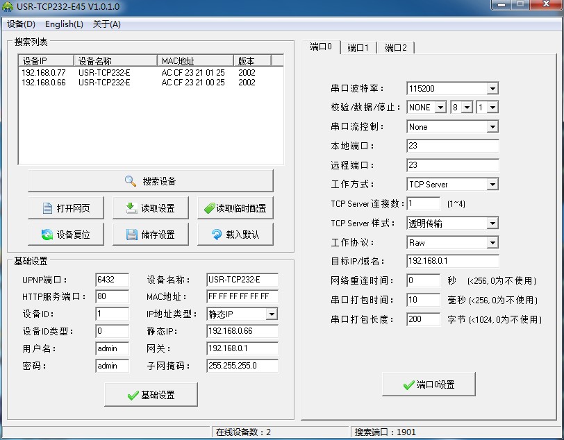 通過我們提供的搜索協(xié)議和軟件可以獲得模塊的IP地址。