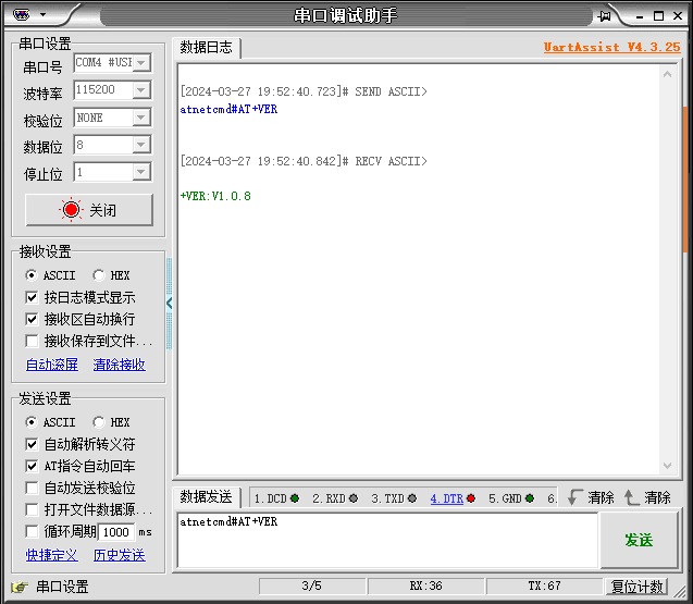 打開串口調(diào)試助手,選擇對(duì)應(yīng)的串口號(hào),串口參數(shù)和設(shè)備本身的參數(shù)對(duì)應(yīng)。點(diǎn)擊打開。輸入指令,這里查詢固件版本??梢暂p松查到。