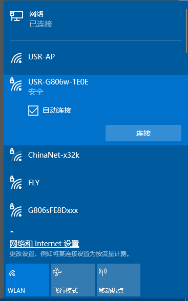 1、電腦搜索USR-G806W自身散發(fā)WiFi熱點(diǎn),WiFi密碼出廠默認(rèn)helipaomo.cn