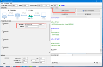 3、獲取當(dāng)前參數(shù)----設(shè)置工作模式為“網(wǎng)絡(luò)透?jìng)髂J健?,輸入遠(yuǎn)程服務(wù)器的IP和端口