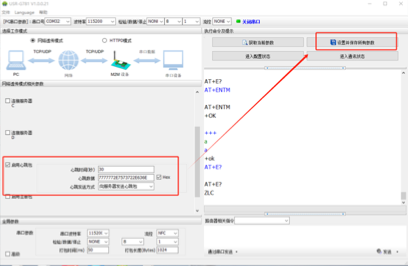 心跳時(shí)間(秒)默認(rèn)是30S,心跳發(fā)送方式是心跳包發(fā)向網(wǎng)絡(luò),自定義數(shù)據(jù)默認(rèn)是Hex顯示是77 77 77 2E 75 73 72 2E 63 6E,ASCII顯示是helipaomo.cn。設(shè)置完后點(diǎn)擊“設(shè)置并保存所有參數(shù)”。