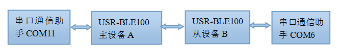 1、提供兩個(gè)USR-BLE100評(píng)估板A、B,A評(píng)估板做為主設(shè)備,B評(píng)估板做為從設(shè)備。