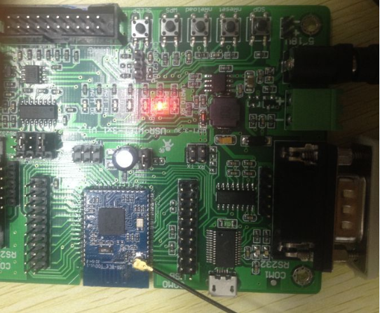 2、分別給兩個(gè)評(píng)估板供電12V,對(duì)USR-BLE100進(jìn)行模式的設(shè)置。