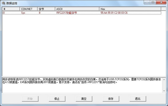 8個字節(jié)數(shù)據(jù)包為我公司特有功能“類RFC2217同步波特率”。實現(xiàn)虛擬串口狀態(tài)改變,對應連接的串口服務器串口參數(shù)也同步改變(僅適用于我公司的串口服務器)