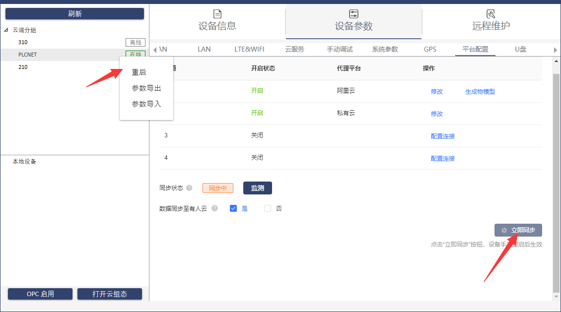 4、點(diǎn)擊立即同步,然后右擊設(shè)備,重啟,等待設(shè)備重新啟動