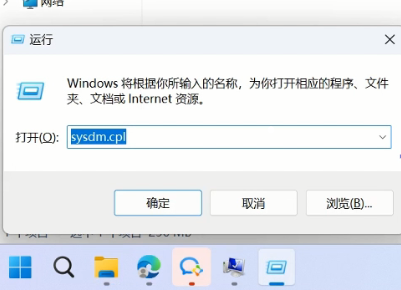(1)打開cmd運(yùn)行窗口,輸入sysdm.cpl打開系統(tǒng)屬性窗口