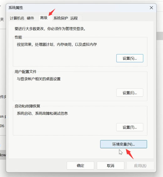 (2)在高級中打開環(huán)境變量