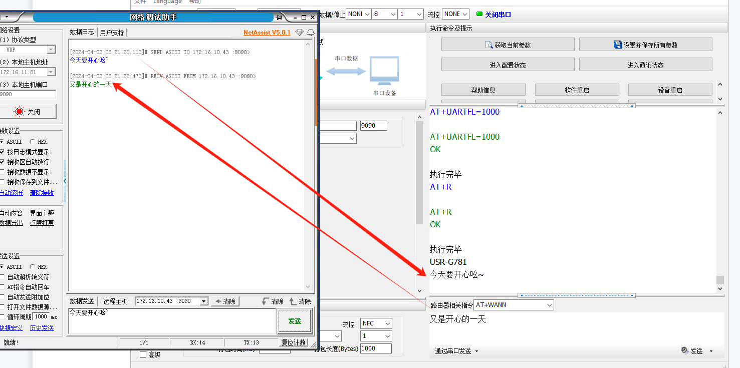 1、在串口上發(fā)數(shù)據(jù),UDP服務器上就能收到。
