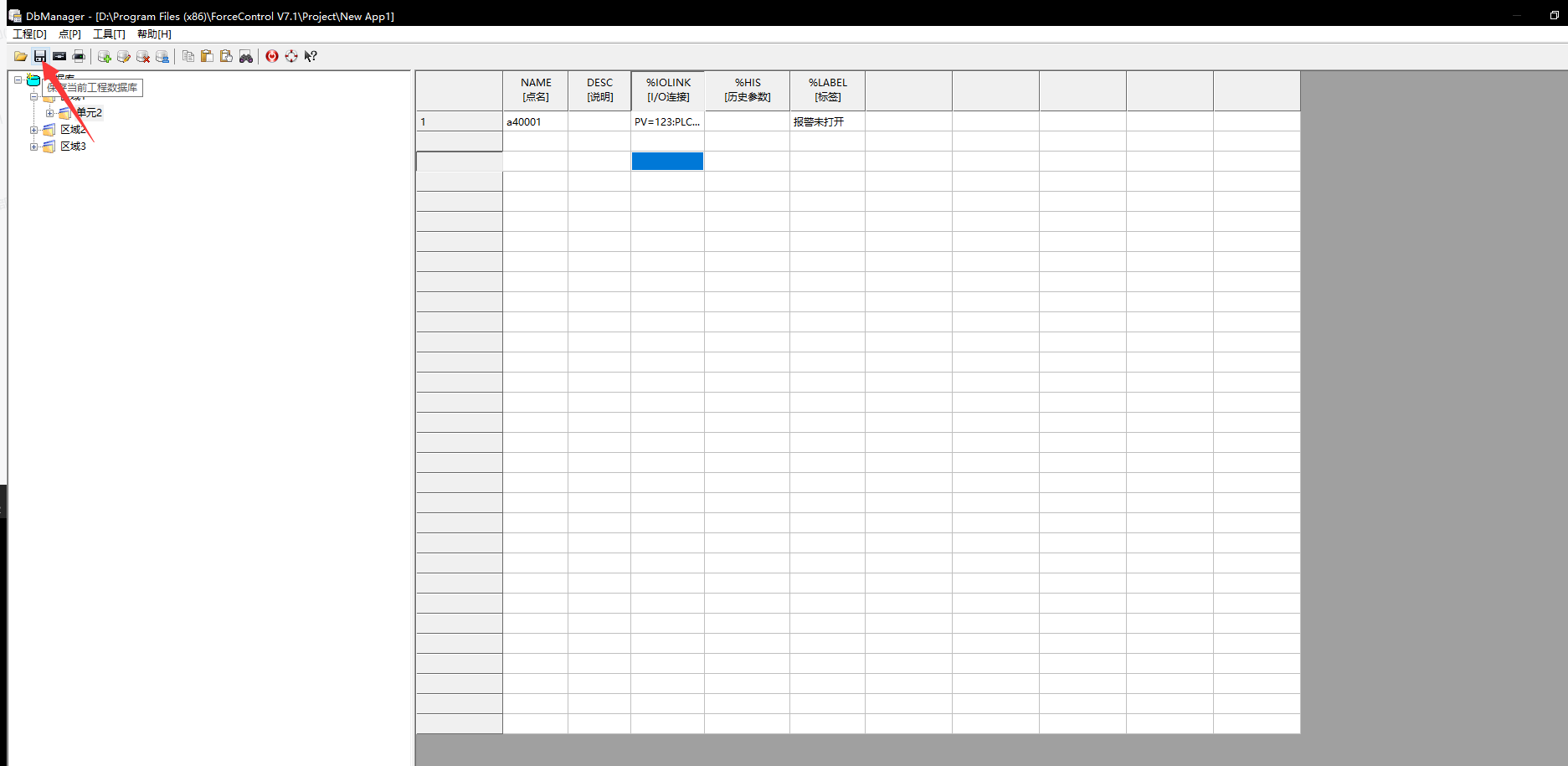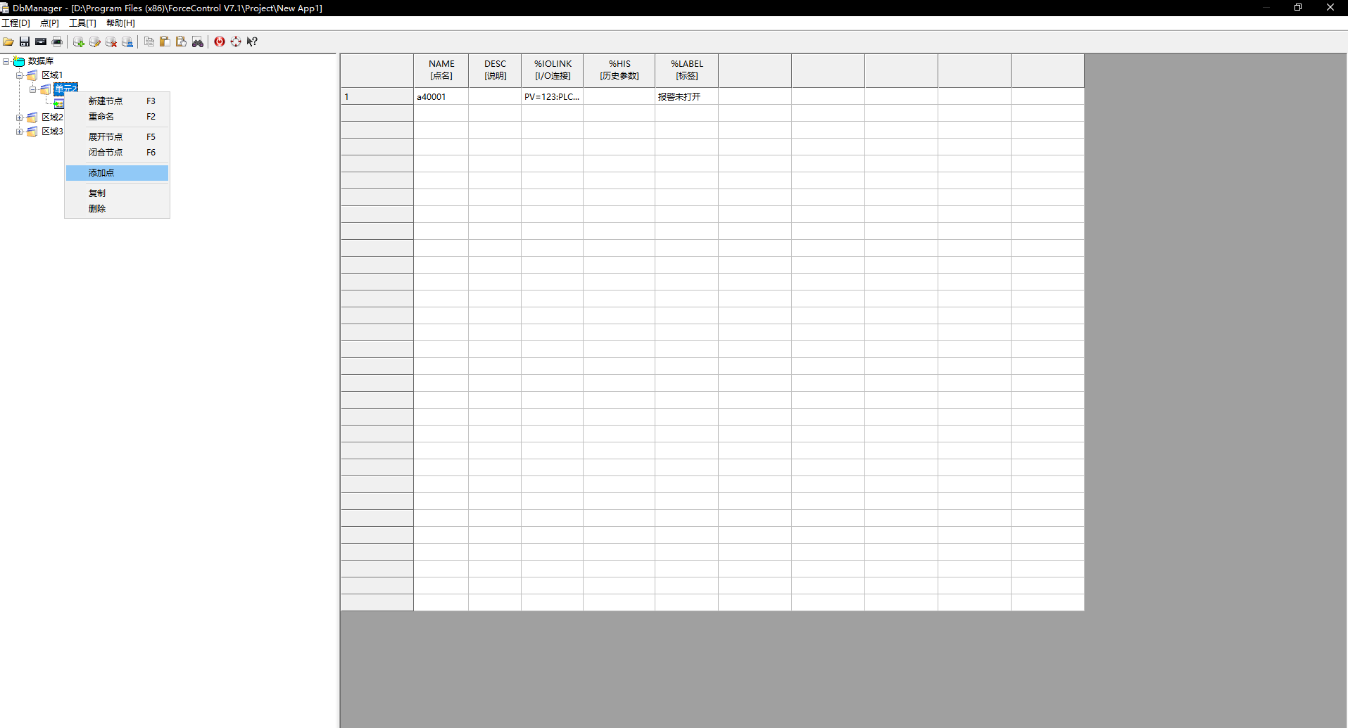 2、在數(shù)據(jù)庫組態(tài)添加數(shù)據(jù)點