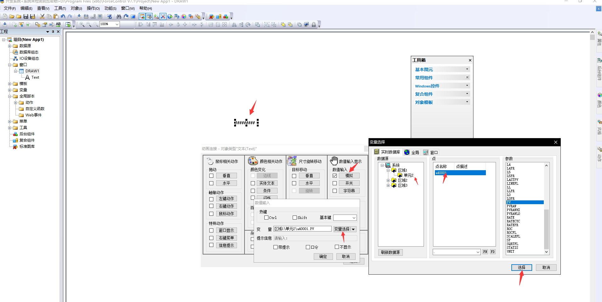 3、給組態(tài)元件綁定數(shù)據(jù)點
