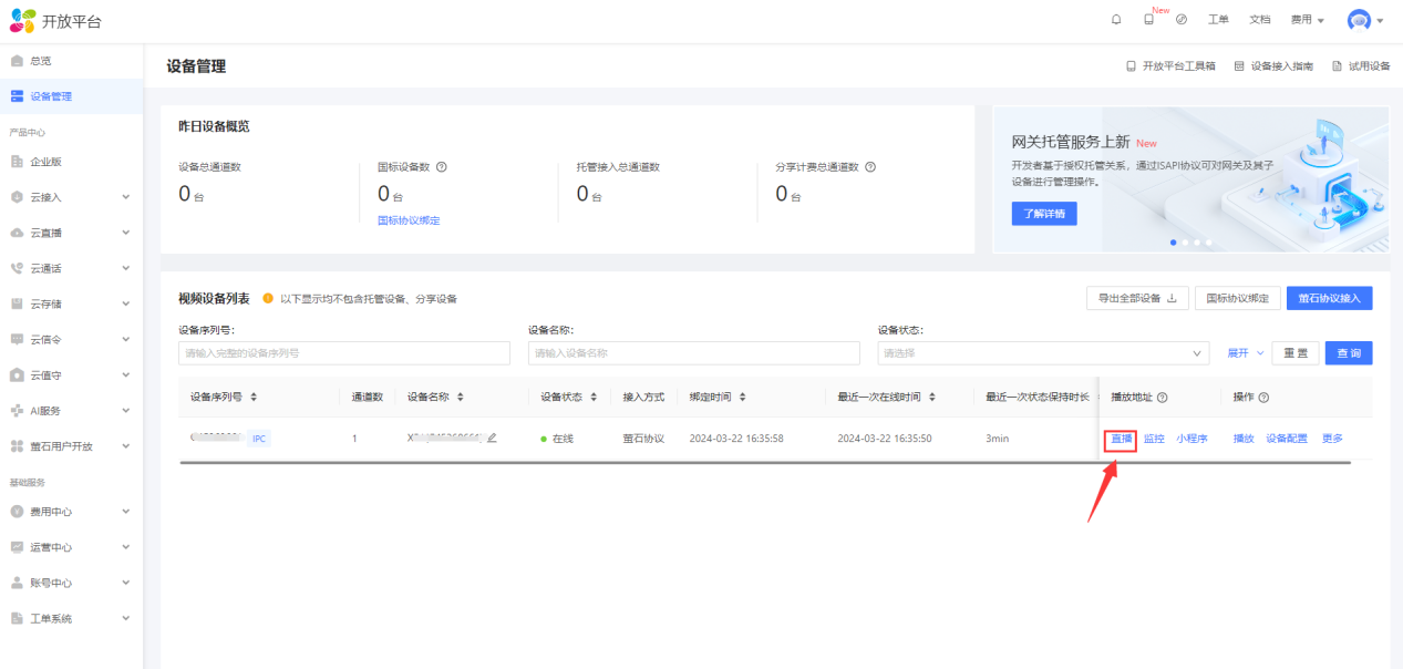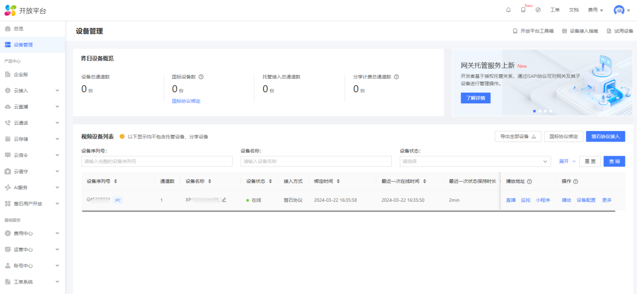螢石云開(kāi)放平臺(tái):https://open.ys7.com/