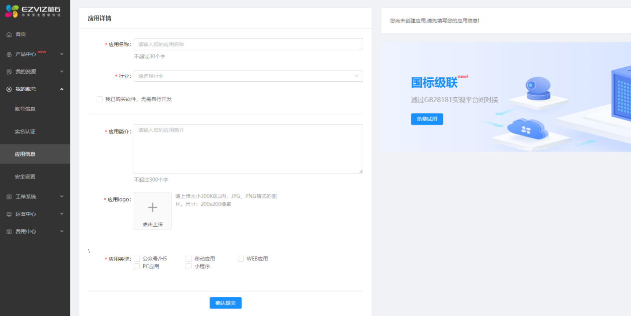 (3)在彈出來(lái)的 應(yīng)用信息 界面填寫一個(gè)應(yīng)用