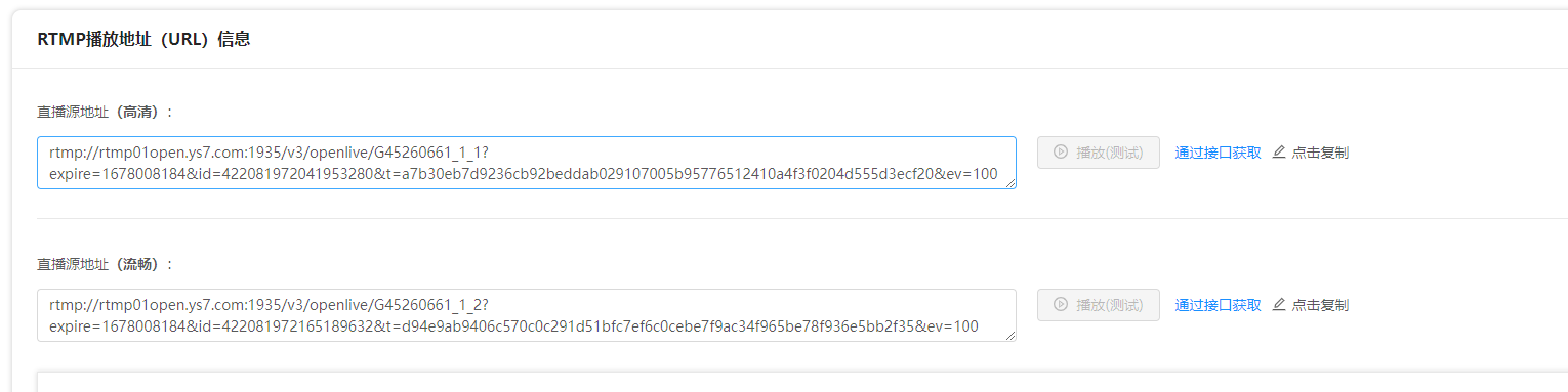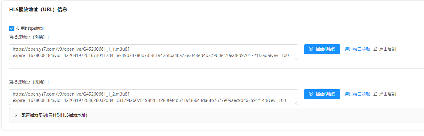 (6)在打開(kāi)的界面找到 HLS播放地址 與 RTMP播放地址