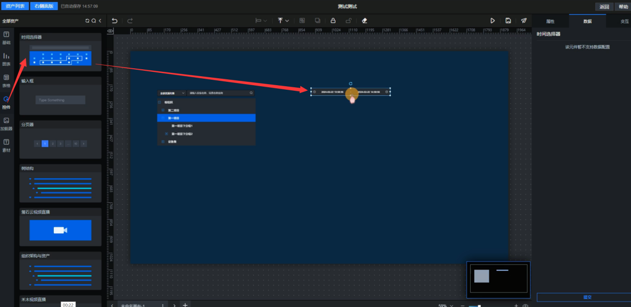 2、點擊左側控件欄,找到“時間選擇器”并拖進畫布