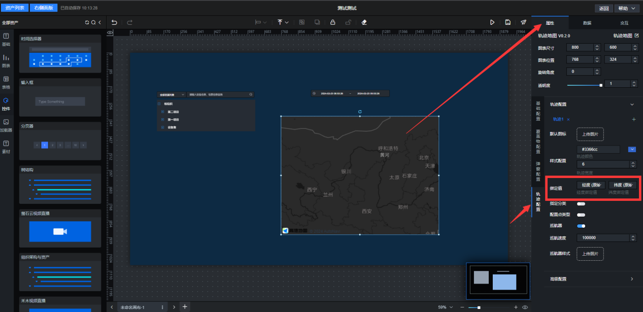 5、配置地圖屬性,點擊軌跡配置,綁定經度、緯度數值