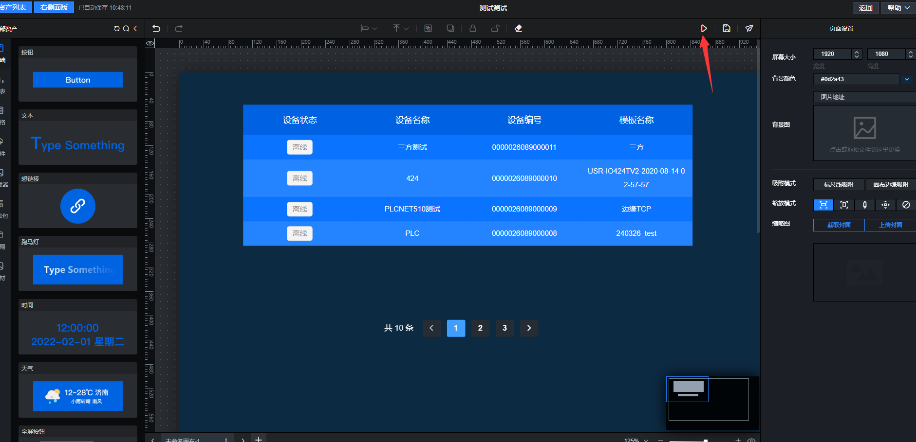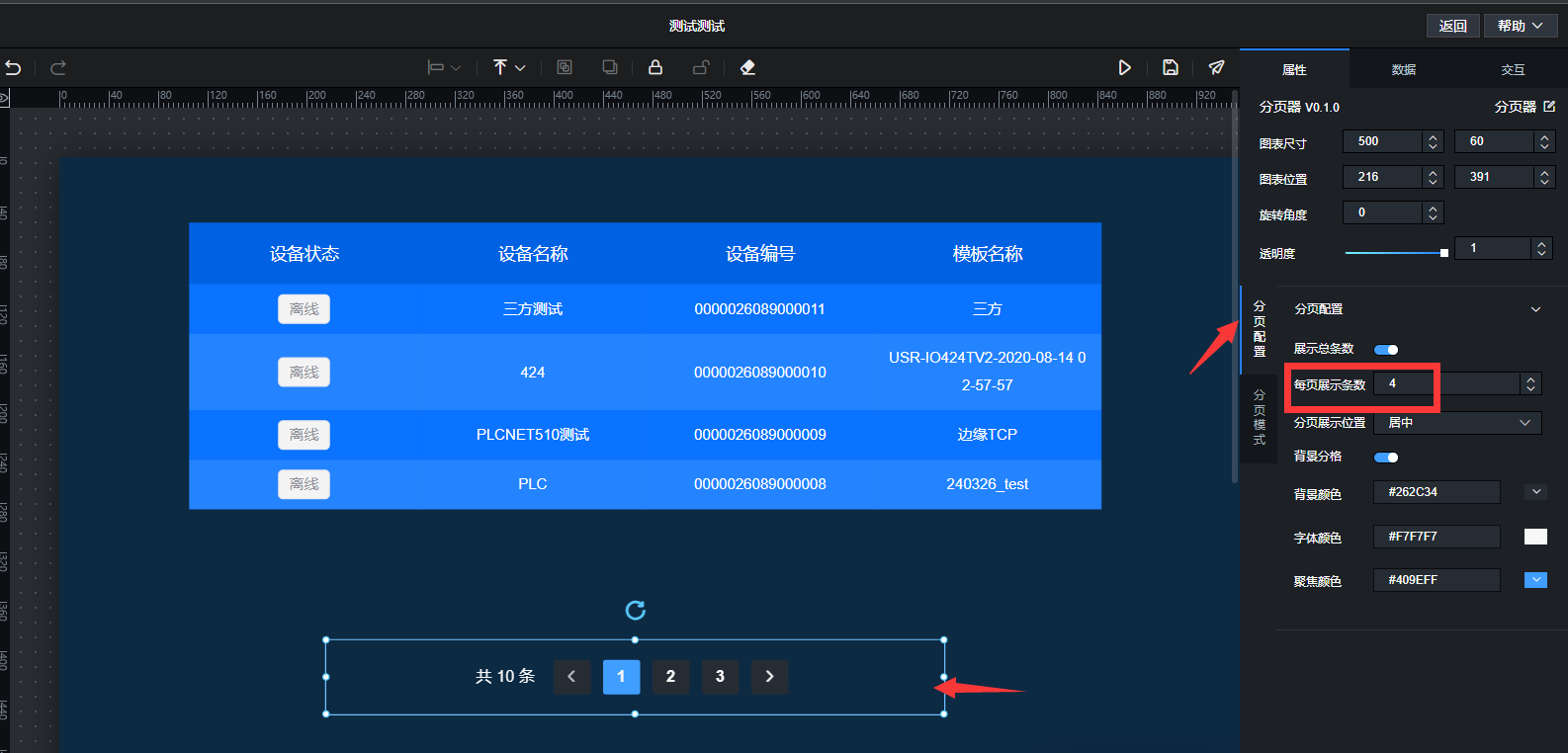 自定義大屏中頁(yè)碼切換設(shè)備頁(yè)面示例