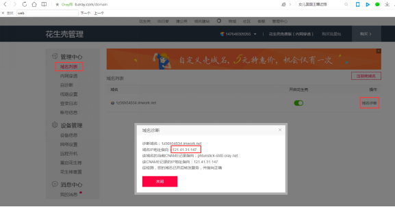 4、 有些客戶軟件不支持域名只能輸入IP,這個(gè)時(shí)候可以在域名列表的域名診斷里確定域名指向的IP是多少,直接連接IP和端口即可,這個(gè)IP一般不會(huì)變,如果改變重新診斷一下就知道了。