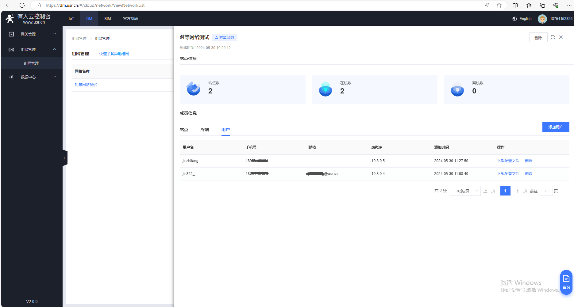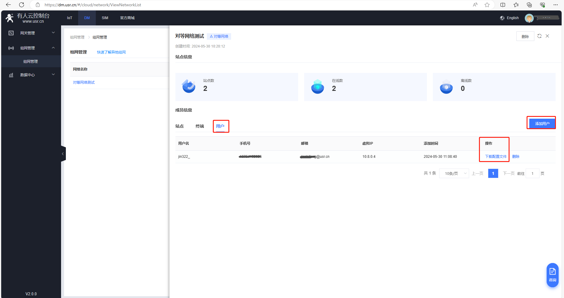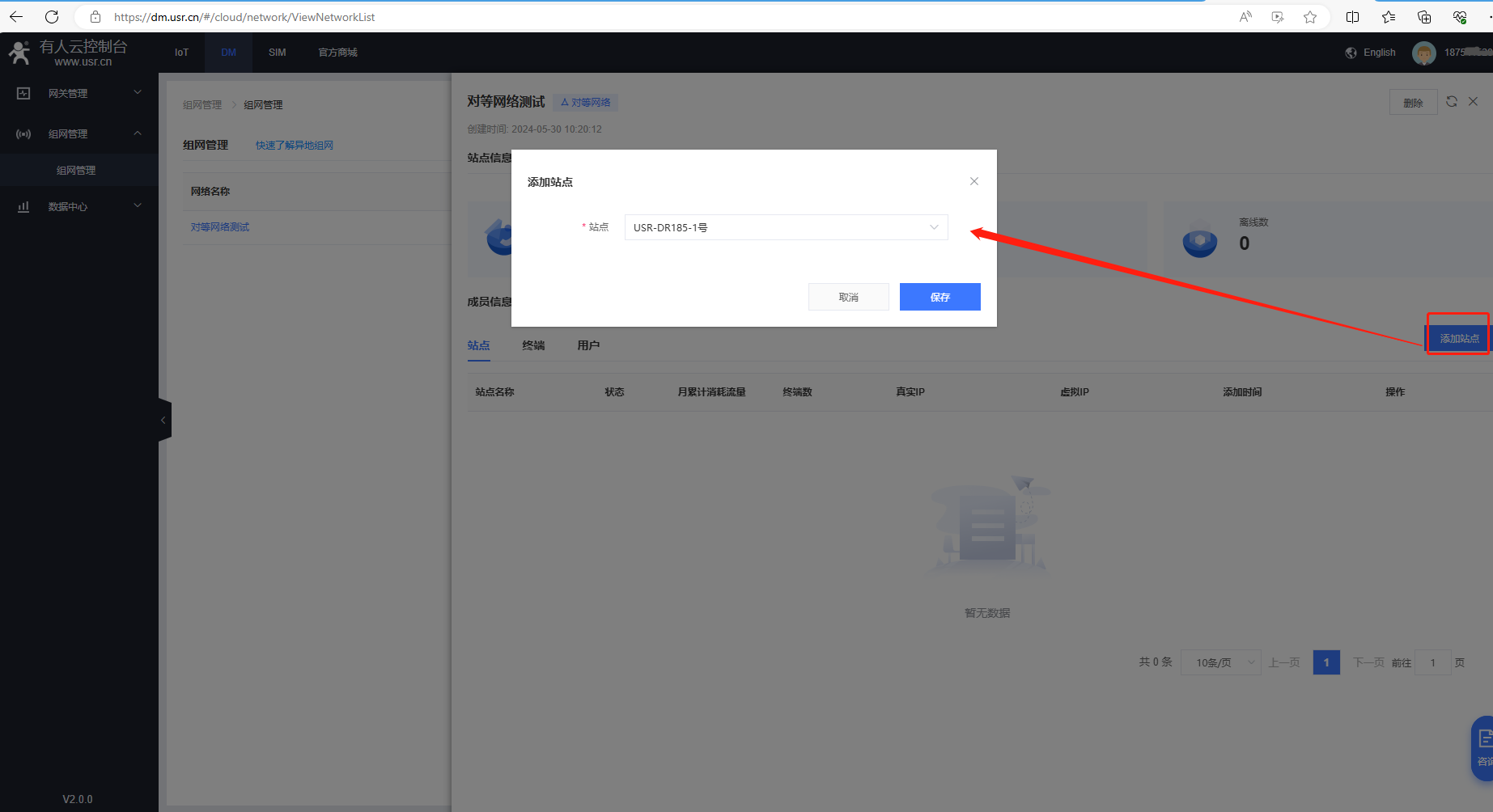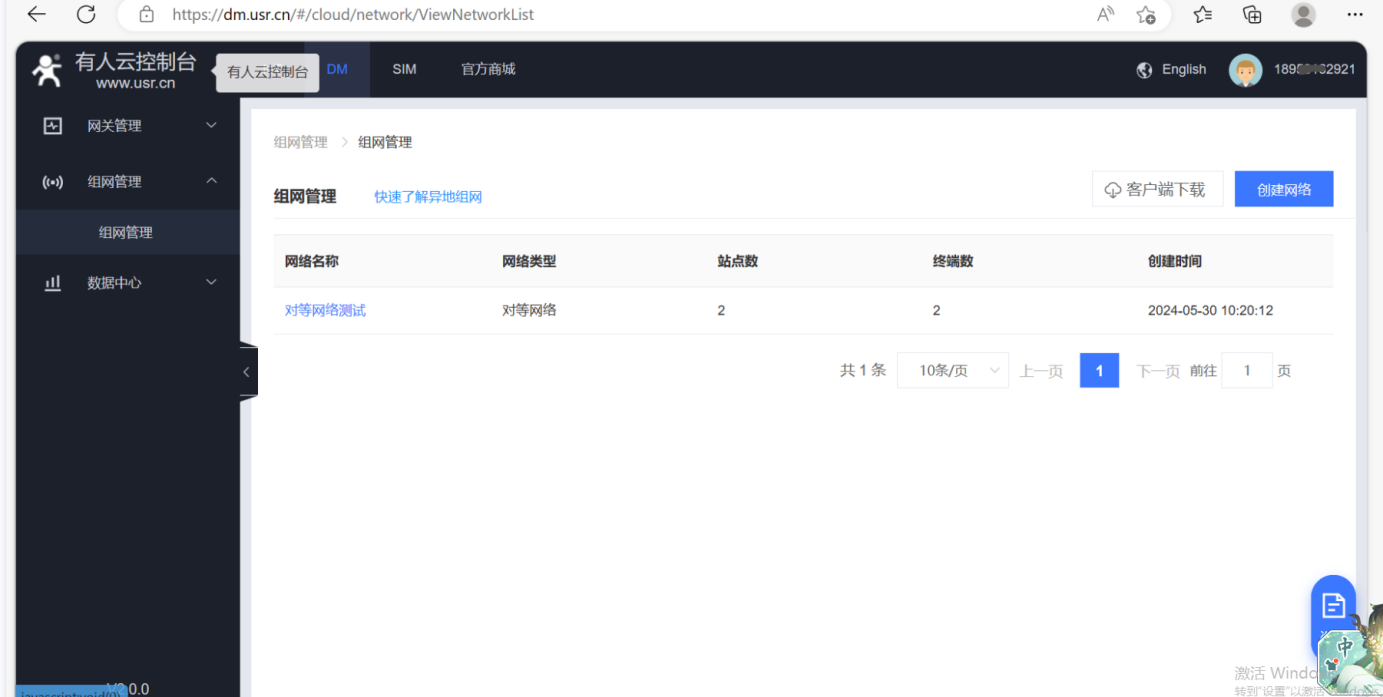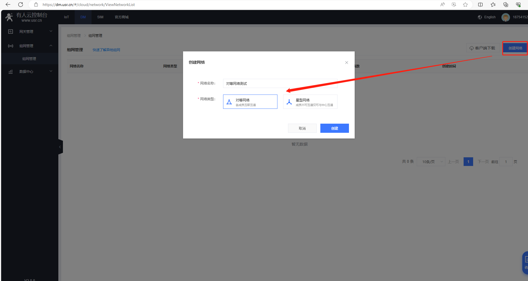 (2)找到DM平臺,點(diǎn)擊組網(wǎng)管理,點(diǎn)擊創(chuàng)建網(wǎng)絡(luò)。